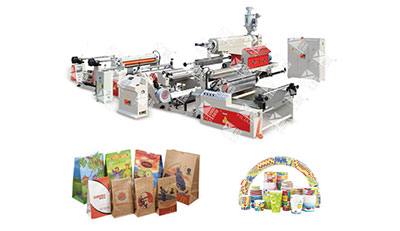本系列設(shè)備以紙,塑膜,紡織布或鋁箔為基材,通過流延,一次復(fù)合成二層,三層(夾心復(fù)合),廣泛應(yīng)用于食品包裝,藥品包裝等各行業(yè)。如制作口杯,方便面碗,飼料包裝袋,醫(yī)用衛(wèi)材,快餐盒,無紡布袋。